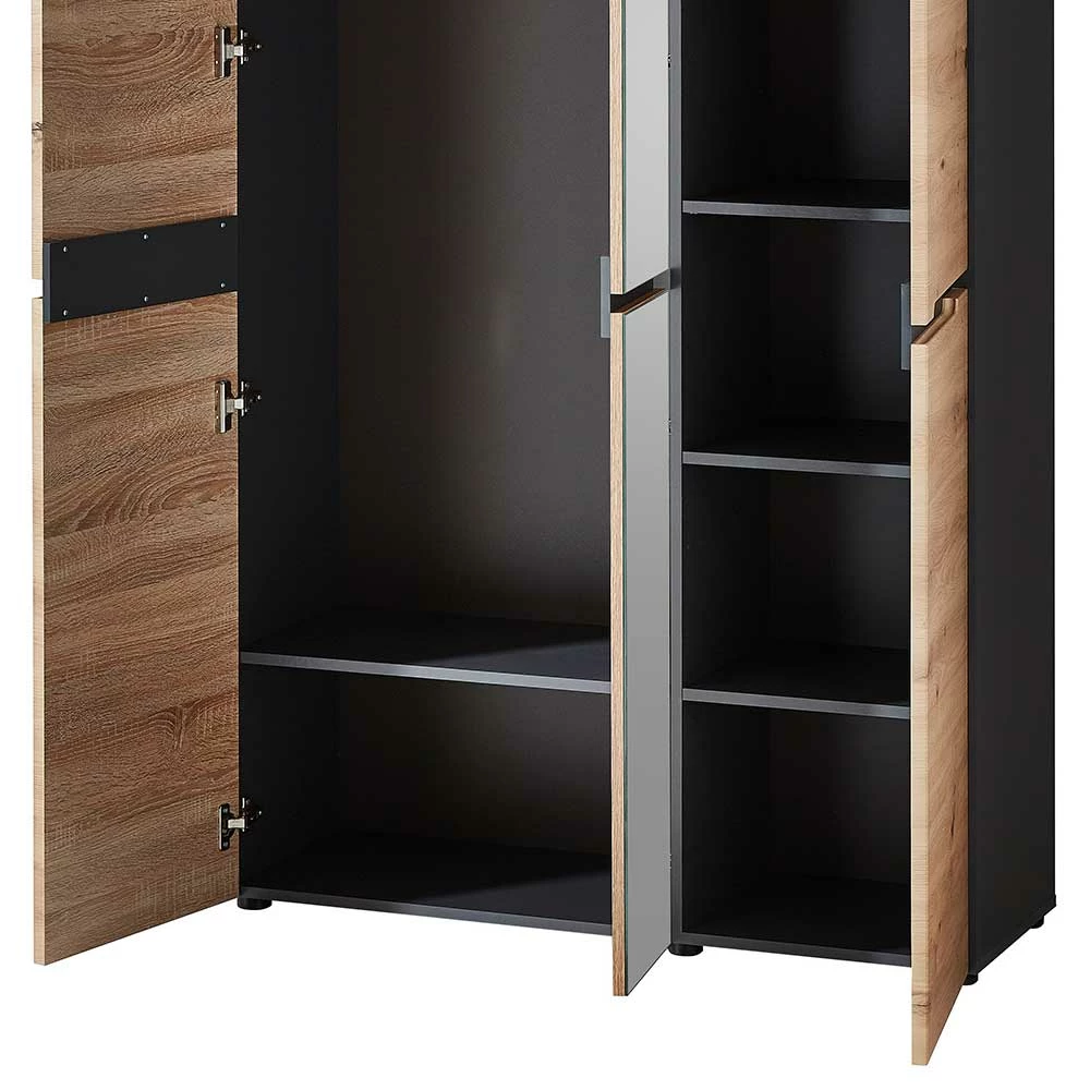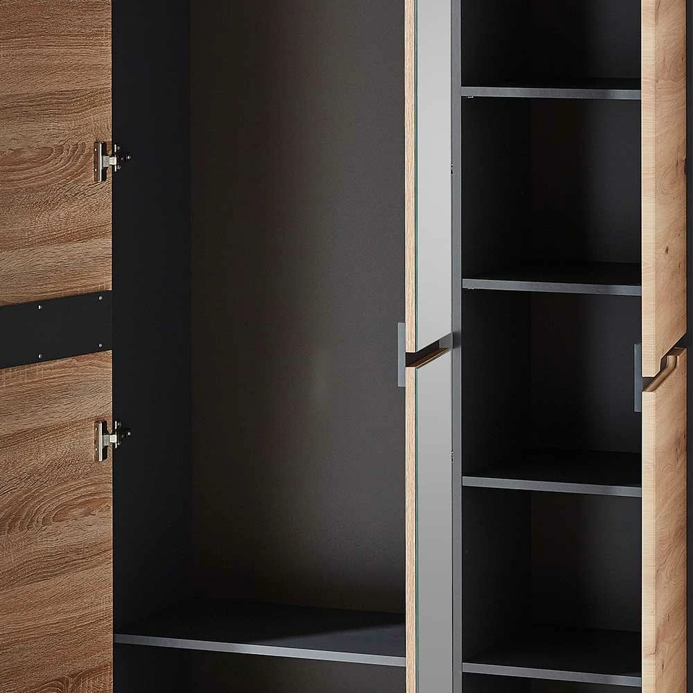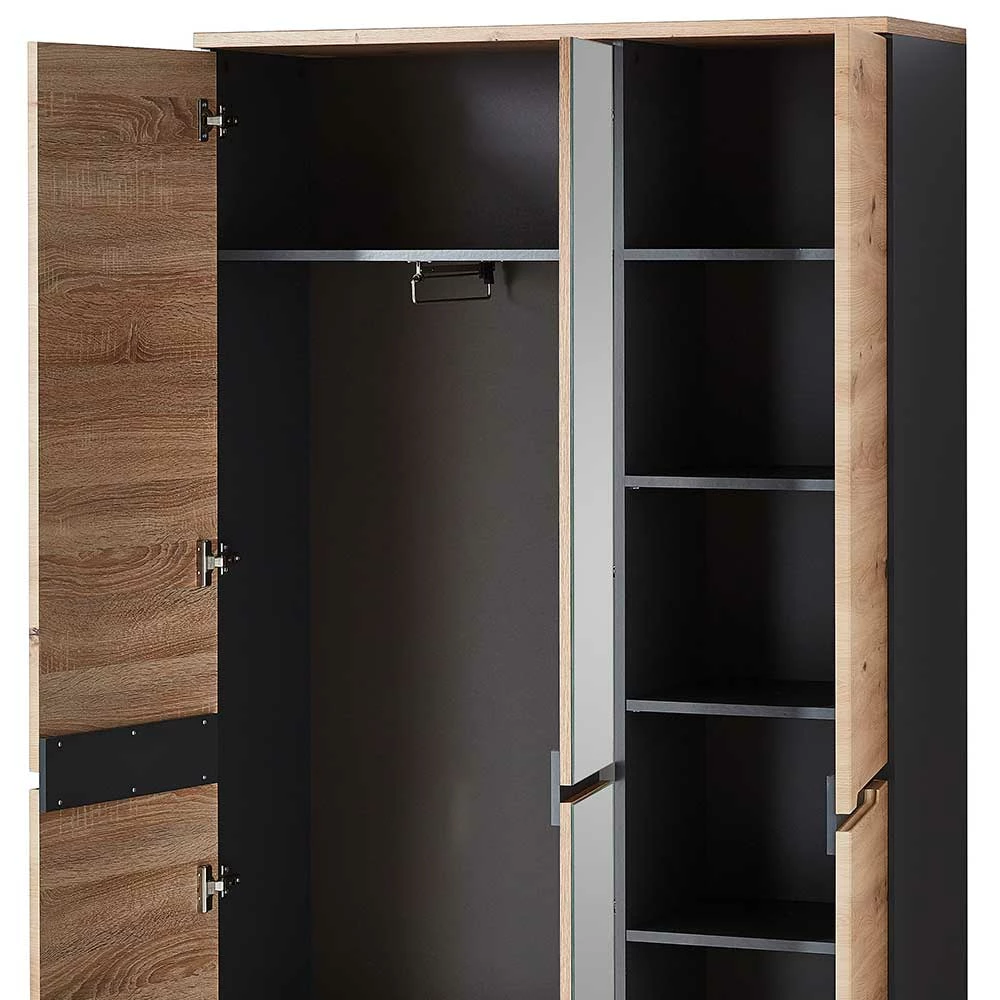 - Großzügiger Garderobenschrank in Wildeichefarben und Dunkelgrau