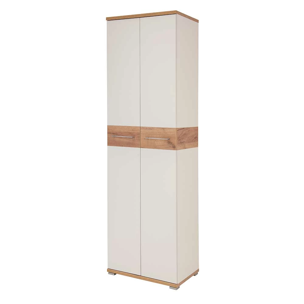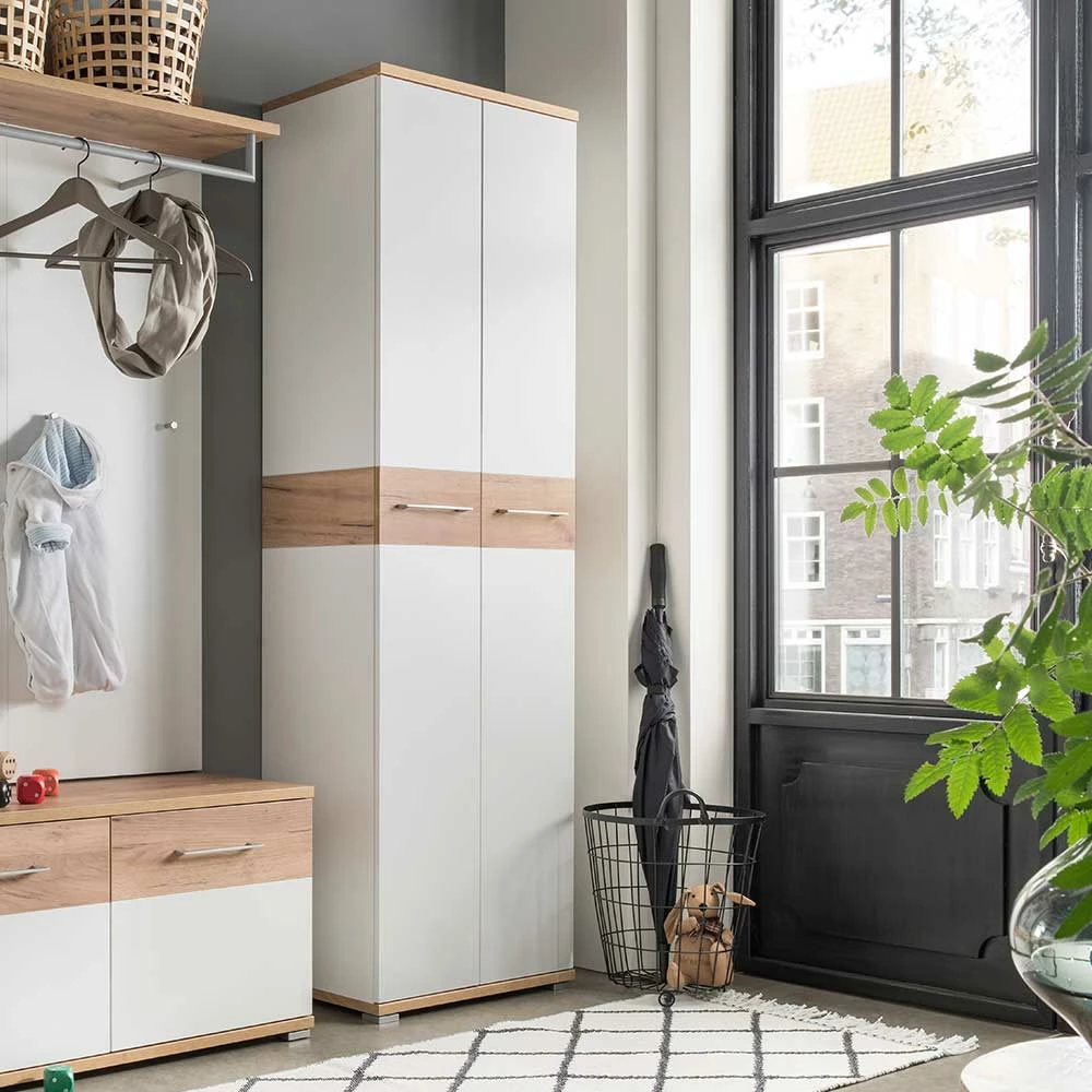 - Schicker Garderobenschrank in Weiß und Eiche