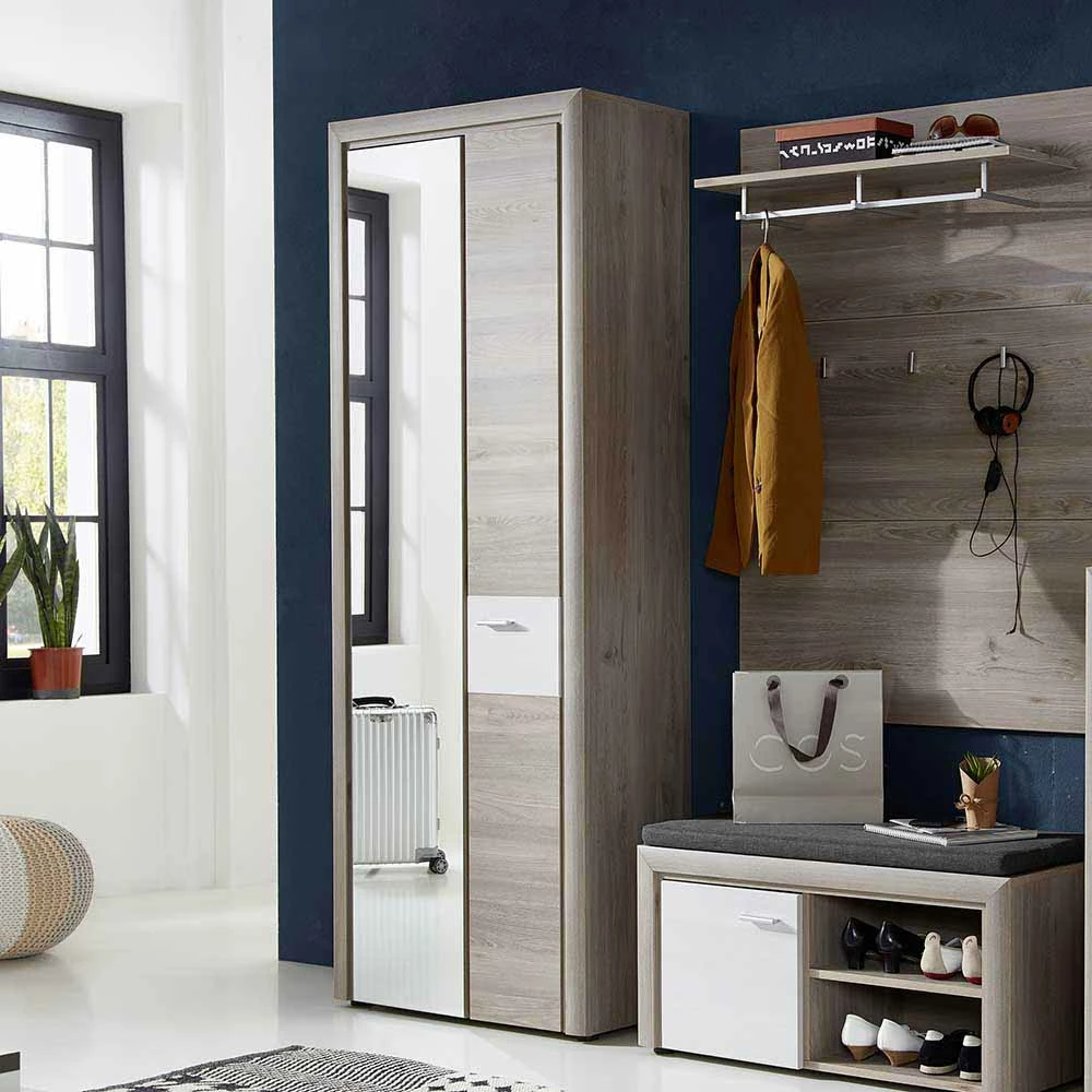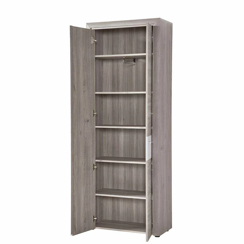 - Stilvoller Garderobenschrank in Eiche Grau und Lärche Weiß