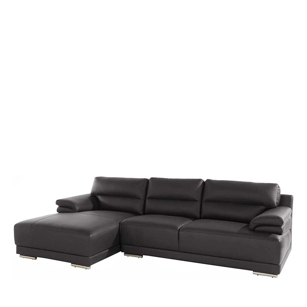 Braune Dreisitzer Eckcouch Aus Kunstleder – Leida
