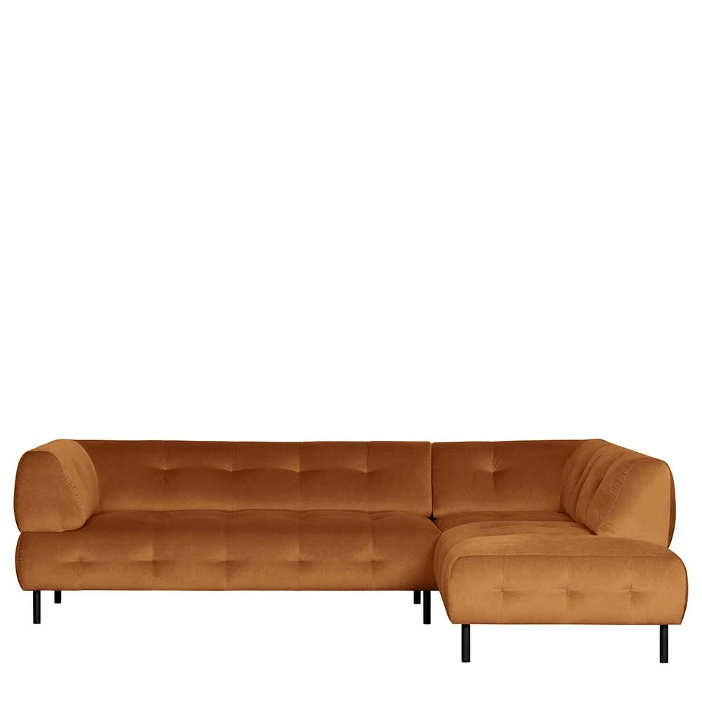 L-Form Couch In Hellbraun Samtbezug – Ulrike