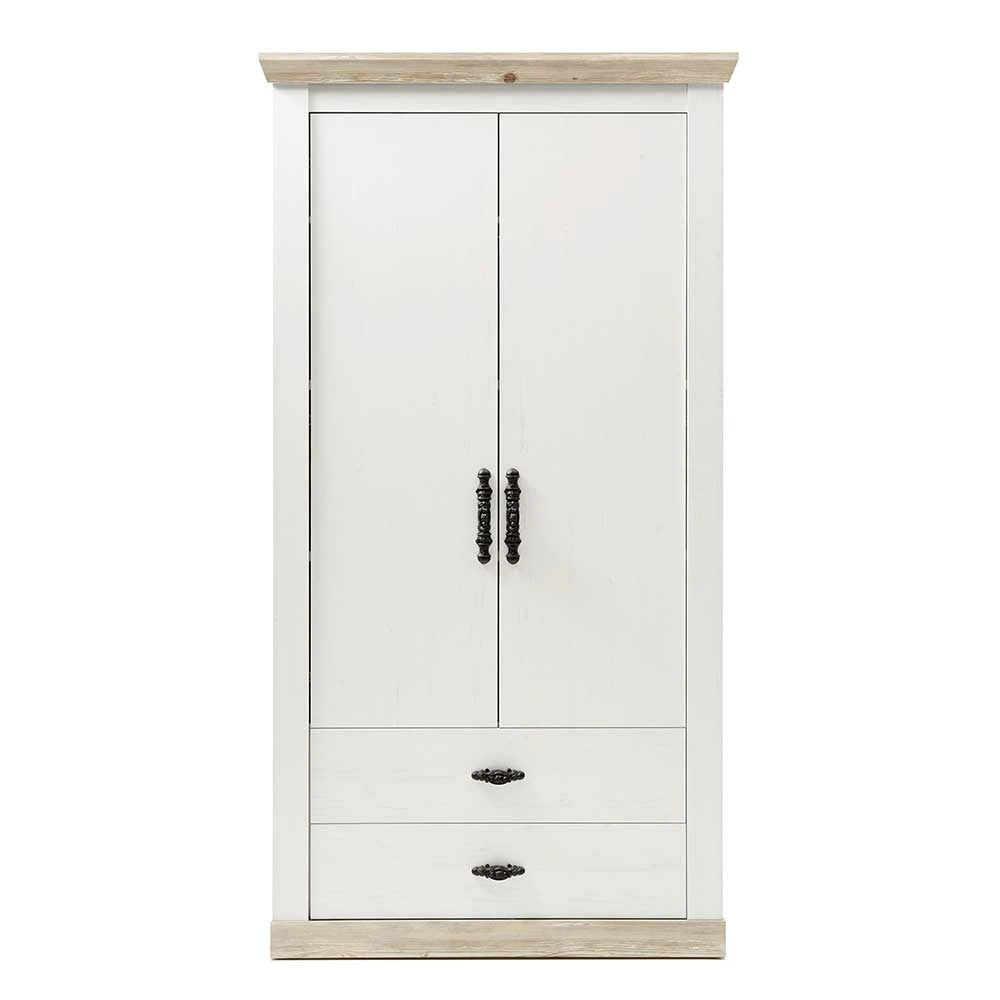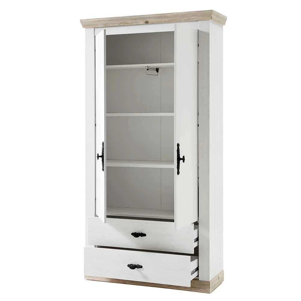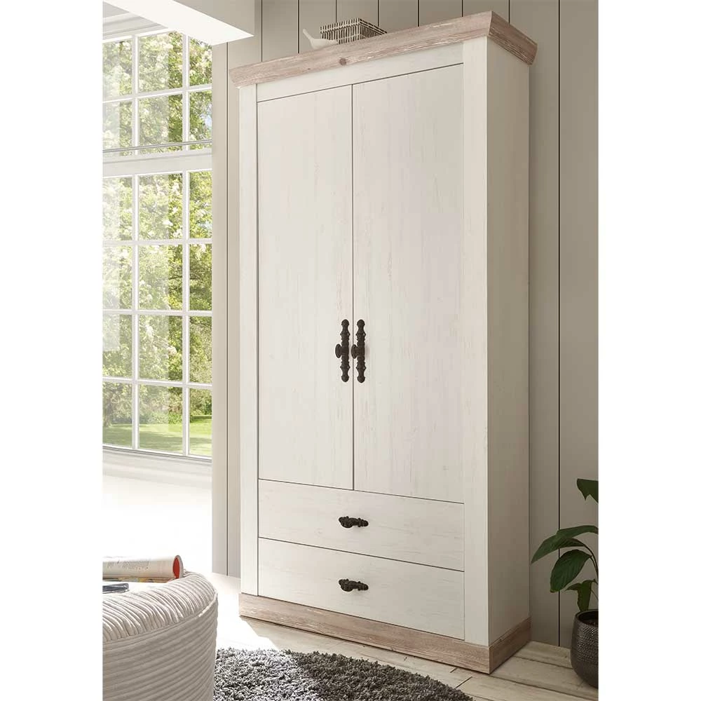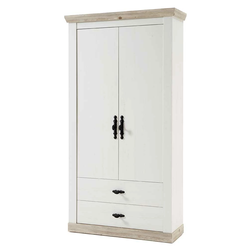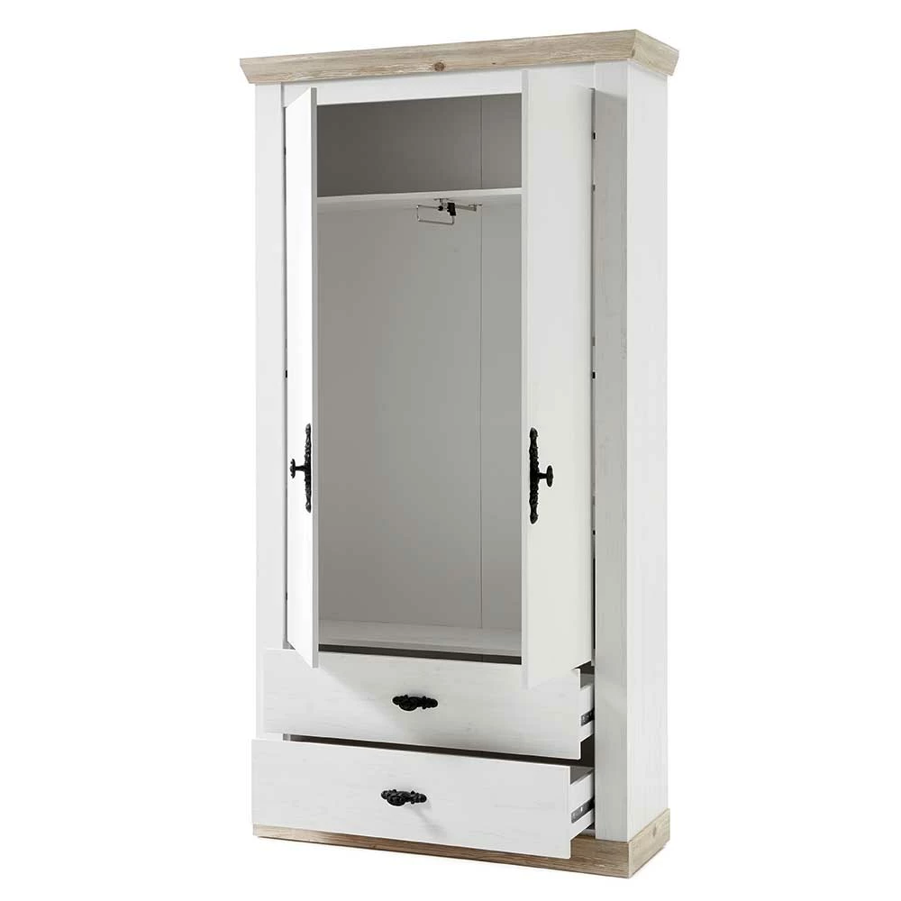 - Geräumiger Garderobenschrank in Weiß und Pinie verwittert
