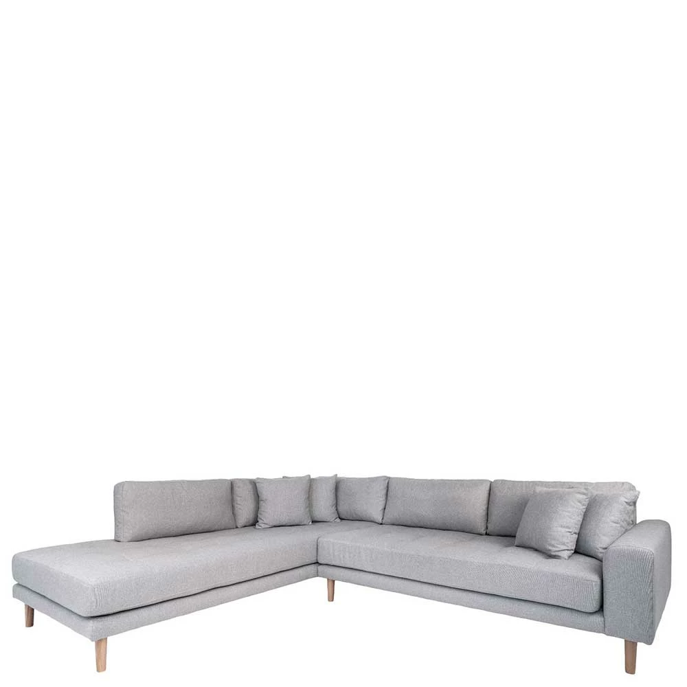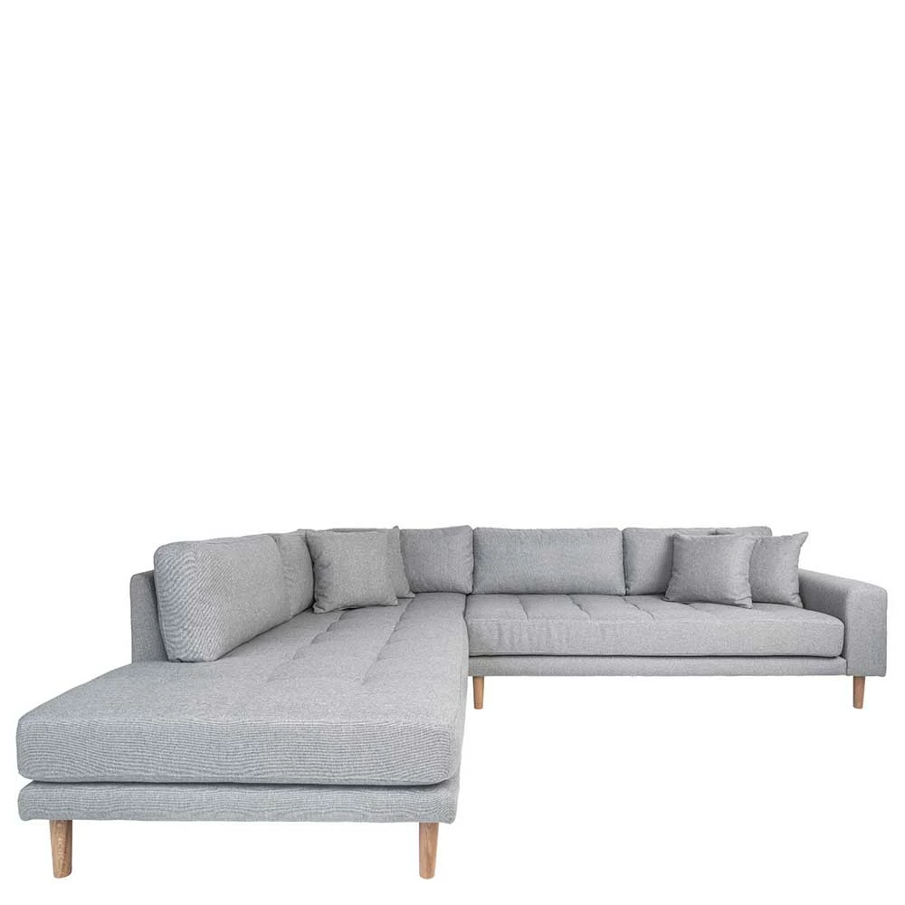 - Großartiges Ecksofa in Hellgrau und Eichefarben