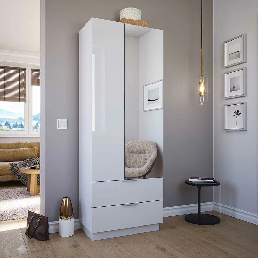 Weißer Hochglanz Flurschrank Mit Spiegel – Ziolas